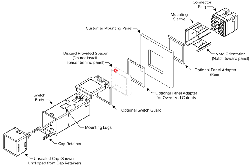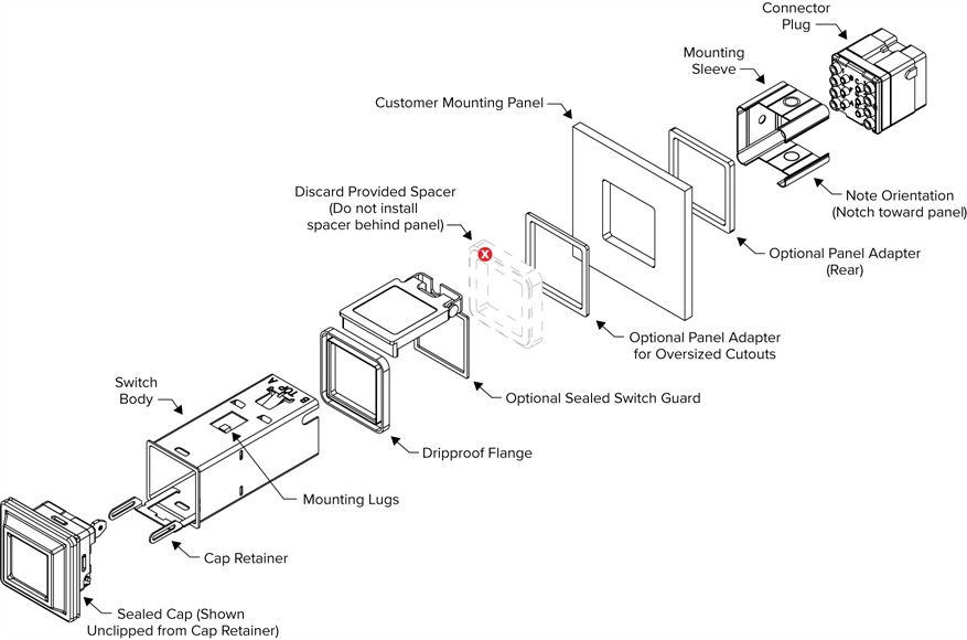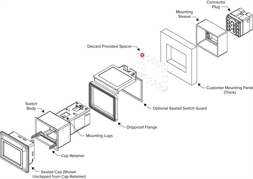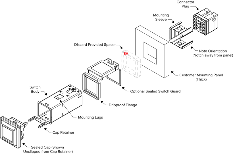 Extended mount installations typically use the provided spacer to accommodate edge-lit panels.